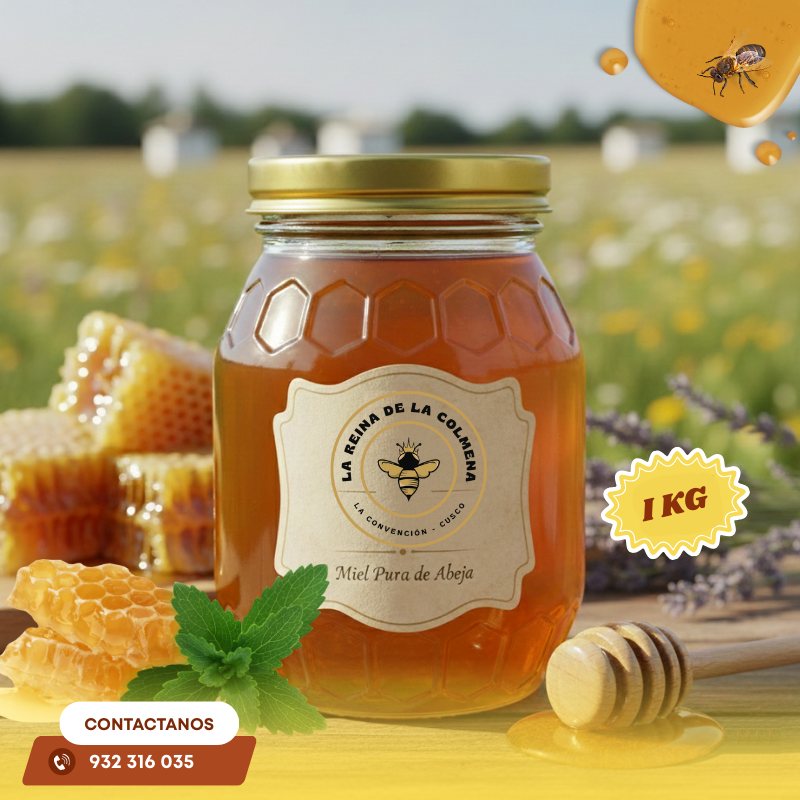 Descubre la Miel de Abeja Pura de 1 kg de La Reina de la Colmena, un producto 100% natural, sin aditivos y recolectado cuidadosamente para garantizarte la más alta calidad. Nuestra miel es elaborada por abejas saludables en colmenas controladas, brindándote un súper alimento lleno de energía, sabor y beneficios para tu bienestar.